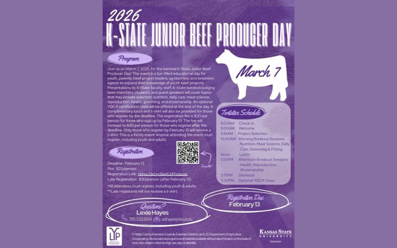 MANHATTAN, Kan. — Kansas State University will host the 2026 Junior Beef Producer Day on March 7 to encourage youth – and adults – to expand their knowledge of beef projects.