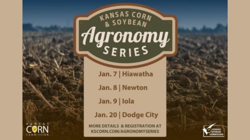The Kansas Corn and Soybean Agronomy Series is coming in January to Hiawatha, Newton, Iola and Dodge City, sponsored by Kansas Soybean and Kansas Corn. With input from growers, the traditional corn and soybean schools have been retooled into a fresh, fast-paced agronomy series designed to prepare growers to meet today’s challenges and opportunities. Each session of the Kansas Corn and Soybean Agronomy Series features a powerful lineup with top private sector and university experts who will share insights on managing crop diseases, fertility management, herbicide strategies, markets, crop insurance and ag programs.