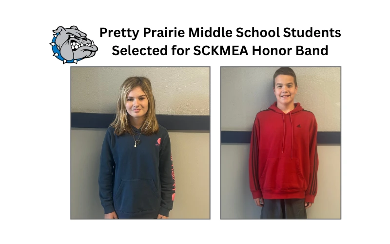 PRETTY PRAIRIE, Kan. — Two Pretty Prairie Middle School students have been nominated and chosen to participate in the South Central Kansas Music Educators Association (SCKMEA) Middle School District Honor Band. The students selected are seventh graders Sommerleigh Mizell and Michael Ramirez. Mizell is a percussionist and Ramirez plays the tuba.