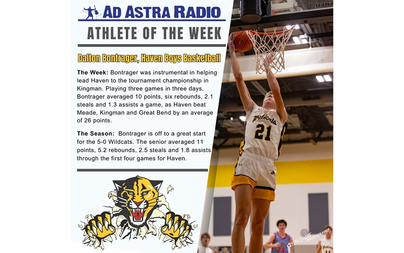 HAVEN, Kan. — Congratulations to Ad Astra Radio’s Athlete of the Week for (12/15-12/21) Dalton Bontrager, Haven High School senior!