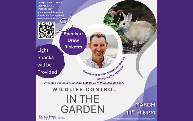 PRINCETON, Kan. — On Wednesday, March 11, 2026, the Frontier Extension District will host a public meeting focused on preventing and managing wildlife pests in home gardens and landscapes.