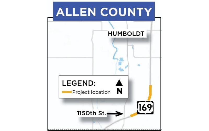 The Kansas Department of Transportation will begin repairing 2.2 miles of U.S. 169 south of Humboldt in Allen County beginning the week of March 16.