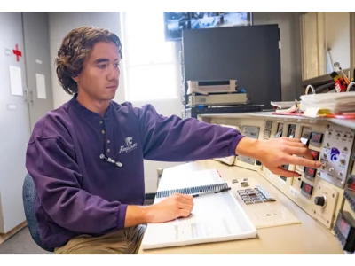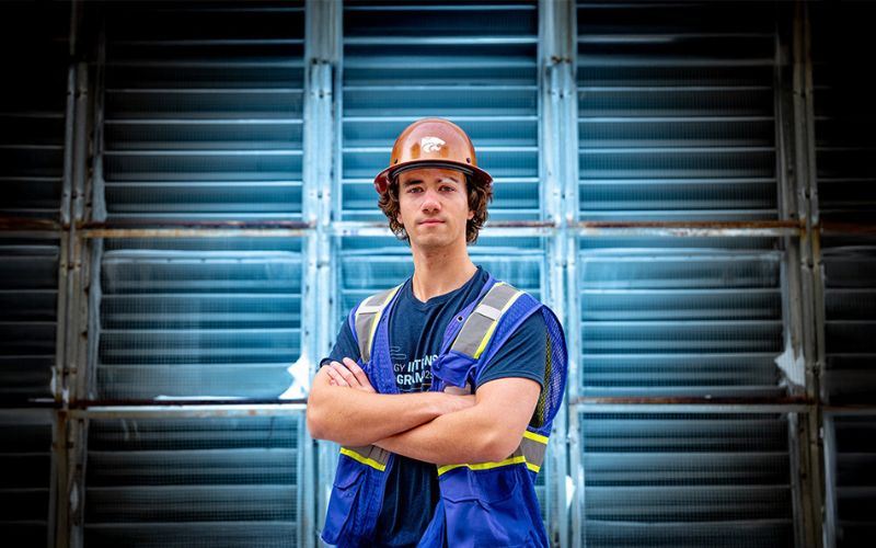 Higbee, ’24, designed a bracket system that made it easier and safer to set up cameras for fuel inspections during his internship. He also brought an essential program back online for the plant while he was there.