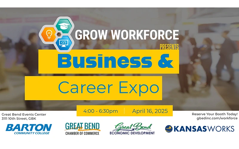 GREAT BEND, Kan. — The 2025 Grow Workforce Business & Career Expo will be held Wednesday, April 16, from 4:00 to 6:30 PM at the Great Bend Events Center (3111 10th Street). The event is free to attend and open to job seekers of all ages and experience levels, including students, career changers, and seasoned professionals.