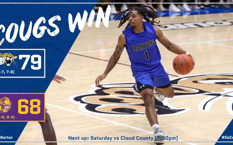 The Barton Community College men’s basketball team began its second trip through the Jayhawk Conference slate the same way it opened league play, notching a victory Wednesday evening as the Cougars knocked off No. 15 Dodge City Community College 79–68 in Dodge City.