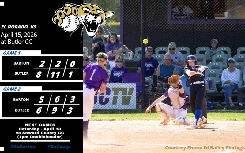 The Cougars fall to 14-10 in conference play and 22-20 overall, while Butler improves to 14-6 in the Jayhawk and 20-14 on the season. Barton returns home Saturday to host Seward County for a 1:00 p.m. first pitch.