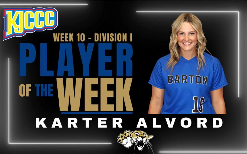 Karter Alvord of the Barton Community College softball team has been named the Week 10 Kansas Jayhawk Community College Conference (KJCCC) Division I Player of the Week.
