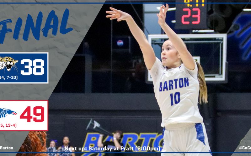 The Barton Community College women’s basketball team saw a strong defensive first half give way to a tougher offensive night after the break, as No. 20 Hutchinson Community College pulled away in the second half for a 49-38 win Wednesday night inside the Hutchinson Sports Arena.