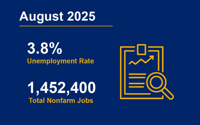 Preliminary data from the Kansas Department of Labor indicates the August unemployment rate of 3.8% was unchanged from July and up a tenth of a percentage point from August 2024 as Kansas’ labor force participation increased to 67%.