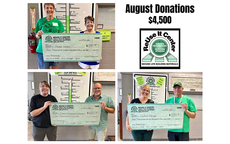 McPHERSON, Kan. — The ReUse It Center was able to donate $4,500 for the month of August thanks to shoppers and volunteers.