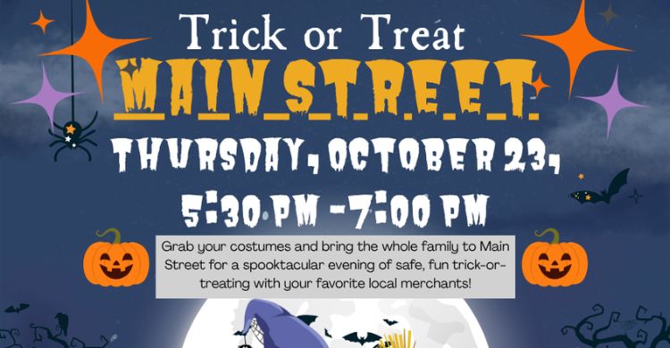 The street closure will begin at 4:30 p.m., with Trick-or-Treat Main Street festivities starting at 5:30 p.m.