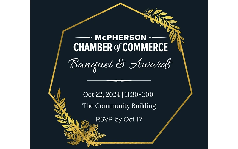 McPHERSON, Kan. — Join the McPherson Chamber of Commerce for the annual Chamber Banquet & Awards on Tuesday, October 22nd from 11:30 a.m. to 1:00 p.m. at the McPherson Community Building.