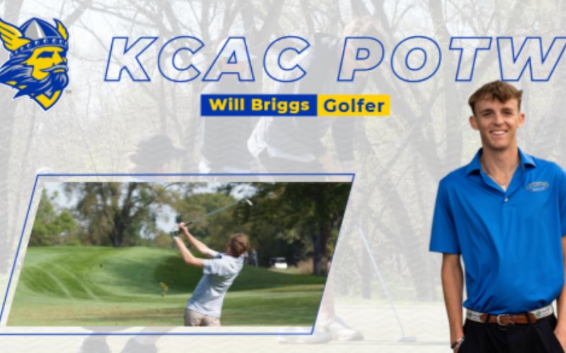 Lindsborg, Kan. – The KCAC has announced that Will Briggs earned weekly honors in part due to his play in the William Woods Invite last week. Briggs played a phenomenal round in the tournment that was cut short to just one round of play. He wound up beating multiple Division I and II along with NAIA opponents shooting two under par.