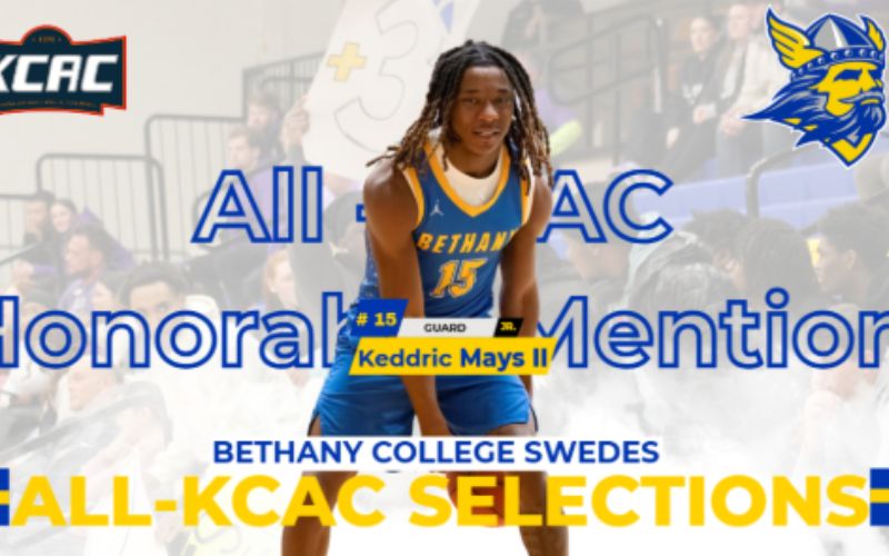 Representing Bethany College was Keddric Mays II who earned honors for the honorable mention team. Mays II was second in the KCAC in steals with 45 during conference play and 60 for the season. He also ranked fourth in the KCAC with 77 made free throws, and eighth in total points (338) and points per game (16.1) during conference play.