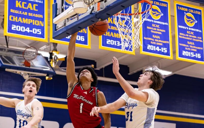 The Bulldogs began the game with the opening bucket after KJ Marshall’s layup from underneath the basket; it’d be followed closely behind with a Joe Gonzales jumper after Tarrance Austin gave McPherson an extra possession with a steal on the other end. At the 12:14 mark of the first half, Korbin Gunn’s triple gave the Bulldogs a 12-point lead over the Bluejays who were struggling to find any offensive rhythm. With the score at 26-14, McPherson managed a 14-4 run that was highlighted by a pair of Marshall dunks alongside a jam from Quran McKinney. The Bluejays finished off the half with a large run to get their first half total up to 30 before the break; the visitors bought some insurance before halftime with two three-pointers from Dash Johnson and Gonzales, giving them a 50-30 lead heading into the locker room.