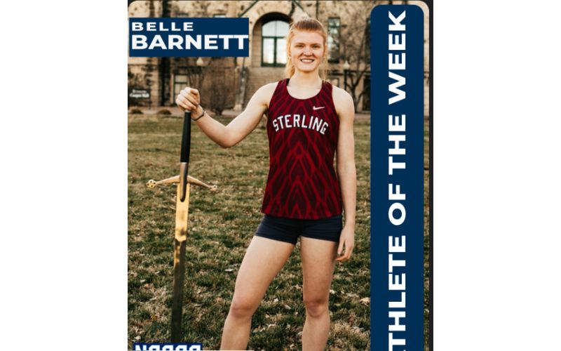 Belle Barnett repeats as NCCAA Student-Athlete of the Week after another outstanding performance in the high jump for Sterling College. The freshman from Hutchinson, Kansas recorded a mark of 1.68 meters at the Tabor University Invite to win the event and continue to hold first in the NCCAA this season. The mark once again puts Barnett over the NCCAA qualifying mark and earns her an NAIA provisional standard in the event.