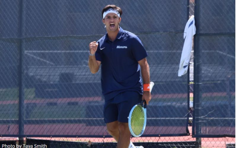 The Warriors started by securing the doubles point with wins in the No. 1 and 2 doubles matches. Fernando Vargas and Kazuki Fukushima secured the win in a tiebreaker battle against Gabriele Renella and Angel Gomez in the No. 1 doubles match, winning 7-6. In No. 2 doubles play, Rubem Bogomoltz and Adam King took care of business, getting the 6-3 win over Emiliano Arjona and Gabriel Leal. Pedro Felipoff and Cassidy Kelly fell short in the No. 3 doubles match, as Evangel’s Alberto Moyo Puigcercos and Nathan Wilking won the match 6-1.