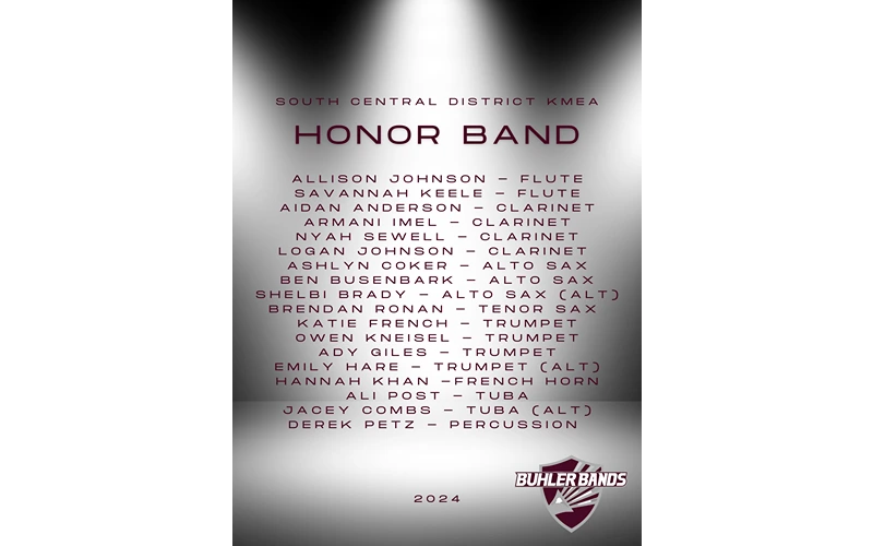 Buhler Band Students Selected for SCKMEA District 1234A Honor Band