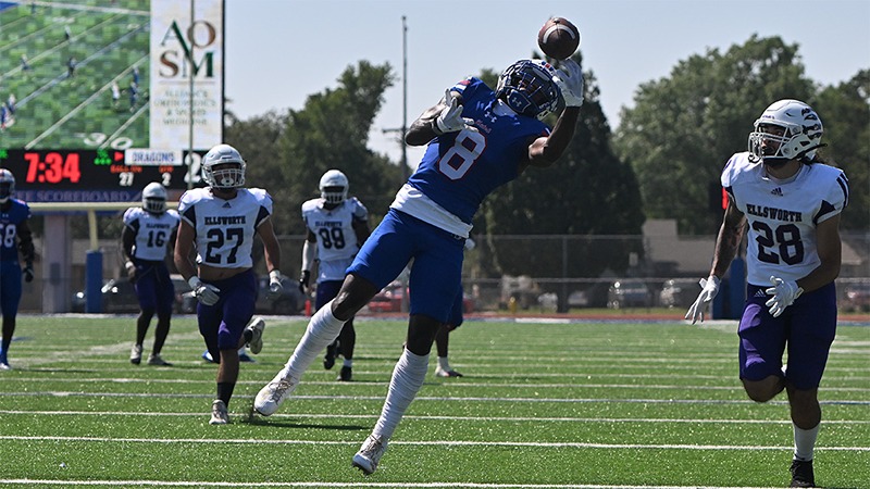 By Hutchinson CC Sports Information HUTCHINSON, Kan. - The 900th all-time game in Hutchinson Community College football history produced a big-time rushing attack for the No. 1 Blue Dragons on Saturday.Tyrell Reed Jr and Amaris Shaw both rushed for more than 100 yards and the Blue... Read More.