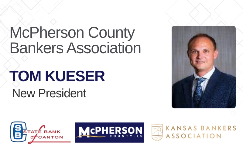 McPHERSON COUNTY, Kan. — Tom Kueser, President of the State Bank of Canton and McPherson County Commissioner has been elected new President of the McPherson County Bankers Association."I am both honored and humbled to have been named President of the McPherson County Bankers Association,"... Read More.