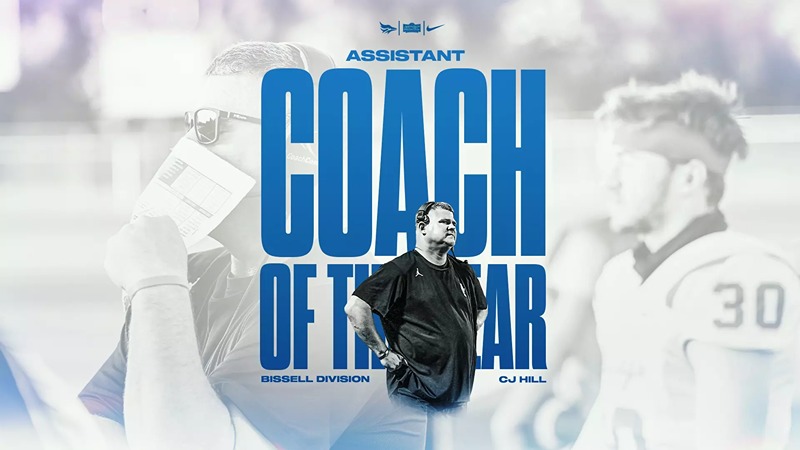 WICHITA, Kan. (TaborBluejays.com) – The Kansas Collegiate Athletic Conference (KCAC) has announced that C.J. Hill has been named 2024 KCAC Bissell Division Assistant Coach of the Year.Hill led a Bluejay defense that recorded 11 interceptions, seven fumble recoveries, 11 sacks, and 62.1 tackles per game.... Read More.