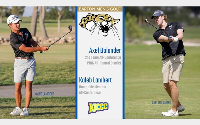 GREAT BEND, Kan. (BartonSports.com) - Axel Bolander and Kaleb Lambert of the Barton Community College men's golf team received recognition following their performances in the 2023-24 season.For Bolander, the Cougars' top golfer throughout the year, finished 6th in the Jayhawk Conference individual standings to earn... Read More.