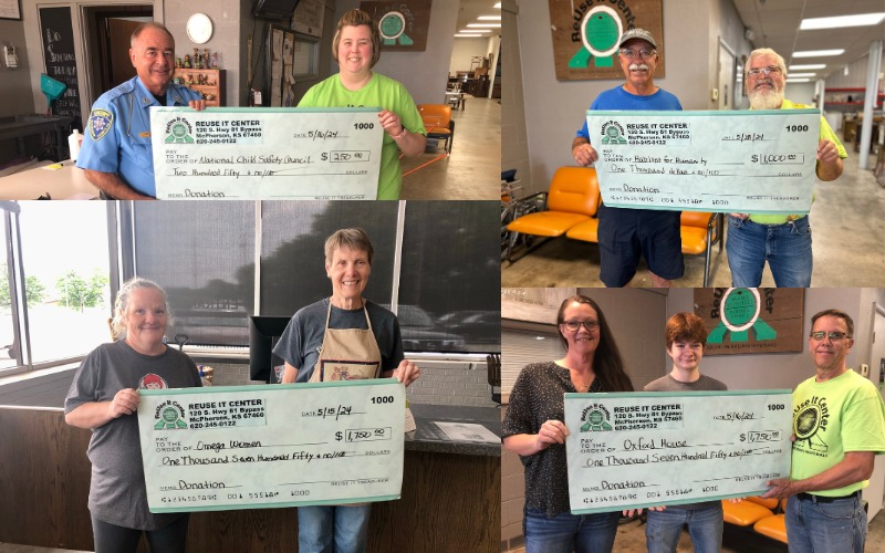 By the ReUse It Center McPHERSON, Kan.  — Thanks to shoppers and volunteers throughout the month of May, the ReUse It Center was able to donate $4,750 to the following organizations. The Omega ProjectThe Omega Project is a multi-faceted, faith-based recovery program that emphasizes heart level... Read More.