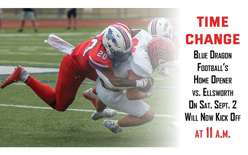 By Hutchinson CC Sports Information The Hutchinson Community College athletic department announced a time change for the No. 2-ranked Hutchinson Community College football team's home opener on September 2 at Gowans Stadium.The Blue Dragons will play Ellsworth at 11 a.m. on September 2 to avoid... Read More.
