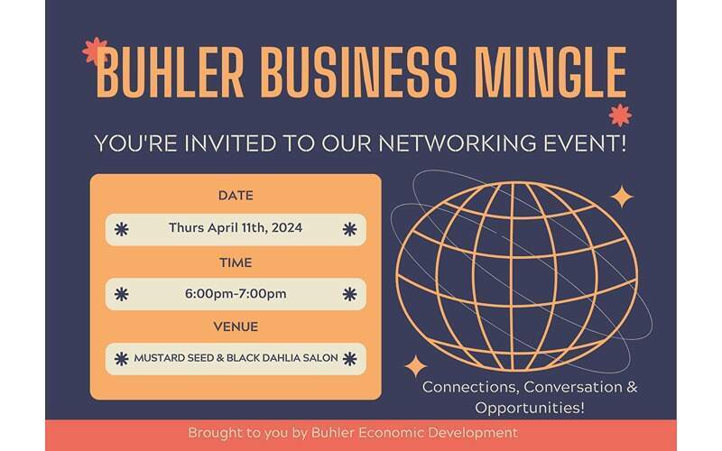 By Brenna Eller BUHLER, Kan. — The Buhler Economic Development is hosting a networking event, a Buhler Business Mingle, at the Mustard Seed Thursday, April 11 from 6 - 7 p.m. The Mustard Seed is located at 214 N. Main, Buhler, KS.There will not be an... Read More.