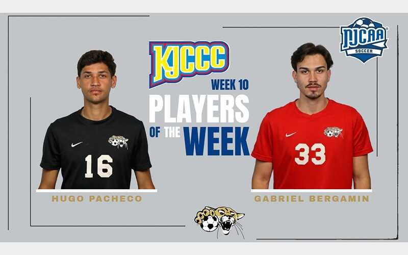 GREAT BEND, Kan. (BartonSports.com) - Hugo Pacheco and Gabriel Bergamin of the Barton Community College men's soccer team swept the KJCCC Division I Player of the Week honors with a national award tacked on as well.The duo helped the Cougars secure the number two seed in... Read More.