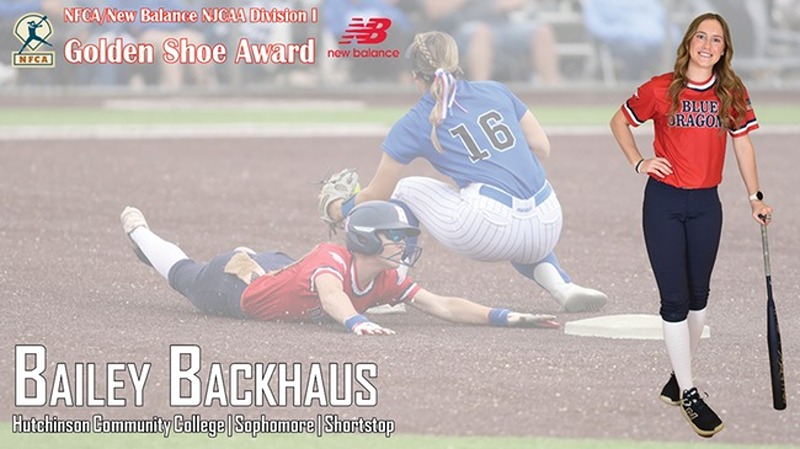 By Hutchinson CC Sports InformationHUTCHINSON, Kan. (BlueDragonSports.com) - Hutchinson Community College sophomore shortstop Bailey Backhaus was named the National Fastpitch Coaches Association (NFCA) Golden Shoe winner for 2025 NJCAA Division I Softball on Tuesday.The Golden Shoe Award is presented by New Balance. The award is... Read More.
